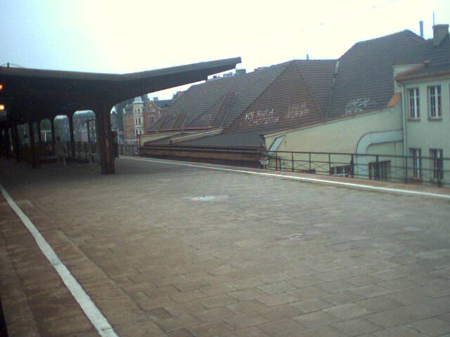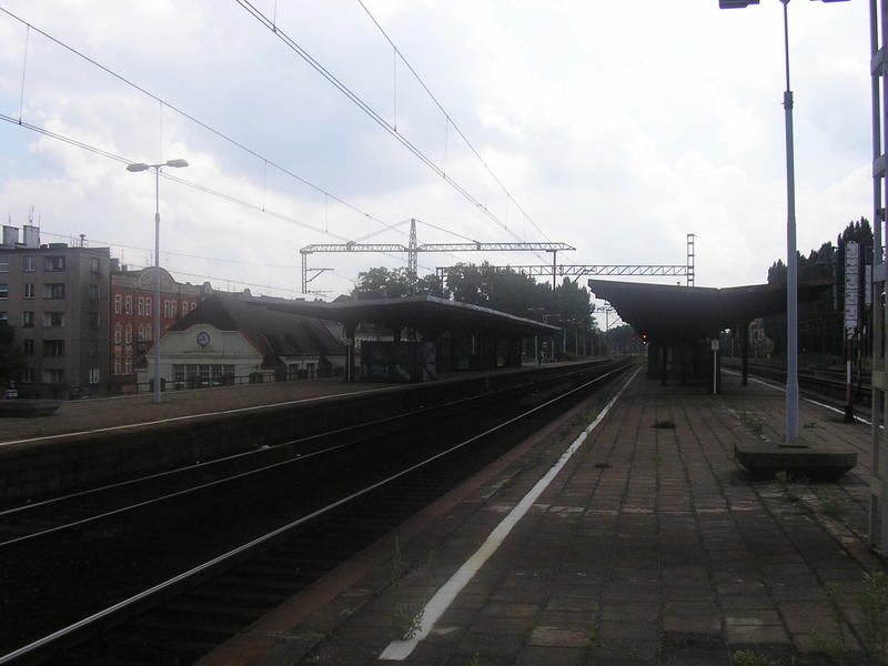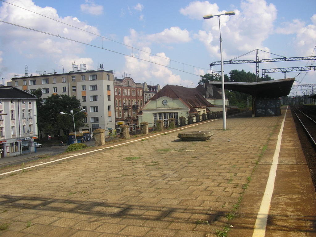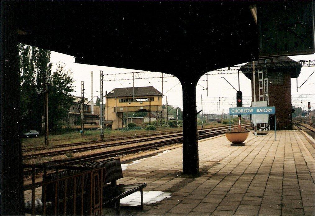 Peron 2 jeszcze ze starą nastawnią wykonawczą na peronie. Na drugim końcu peronu 2 była budka dyżurnego peronowego. W tle, po lewej dawna nastawnia dysponująca CB. Widok w kierunku zachodnim: Ruda Chebzie/Gliwice, Chorzów Stary/Bytom.
