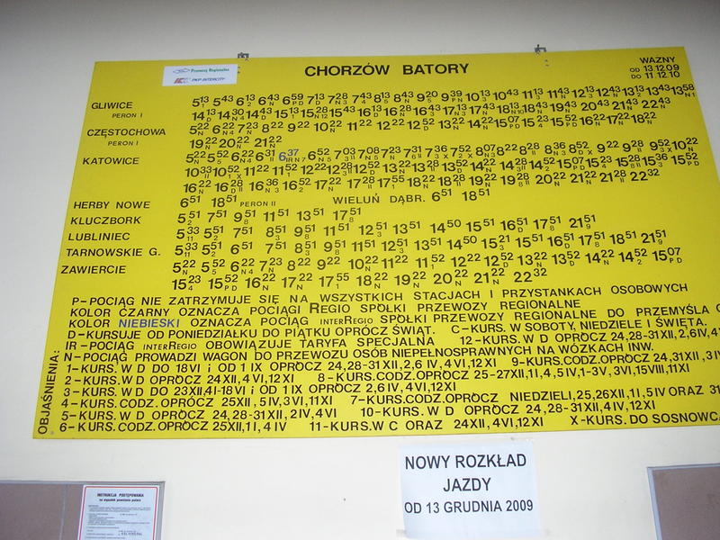 Rozkład jazdy, w budynku dworca PKP znajduje się rozkład jazdy.