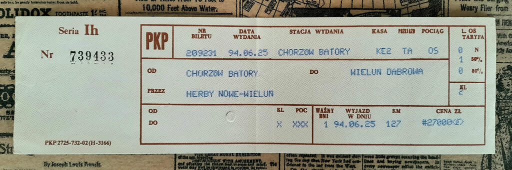 Bilet blankietowy wydany na stacji Chorzów Batory.