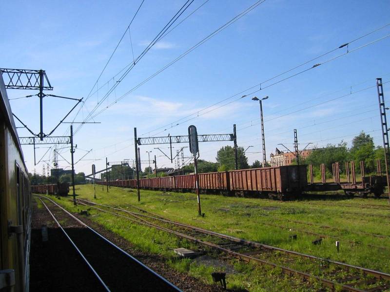 Grupa torów towarowych położonych na północny-zachód od dworca i peronów. Jak za dawnych czasów… W tle zabudowa KWK Mysłowice. Widok w kierunku północno-zachodnim: Szabelnia, Stawiska (dalej stacja Katowice, Katowice Janów, Chorzów Stary).