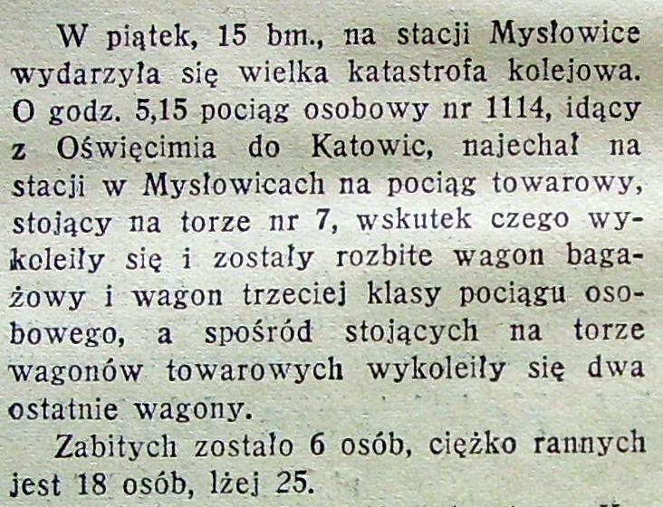 Załóżmy, że wypadek miał miejsce na stacji Mysłowice (lub w najbliższych okolicach).