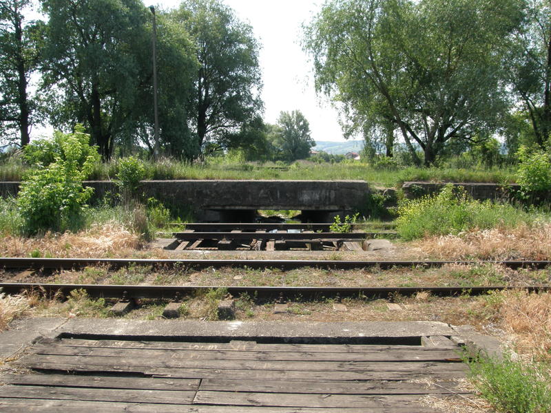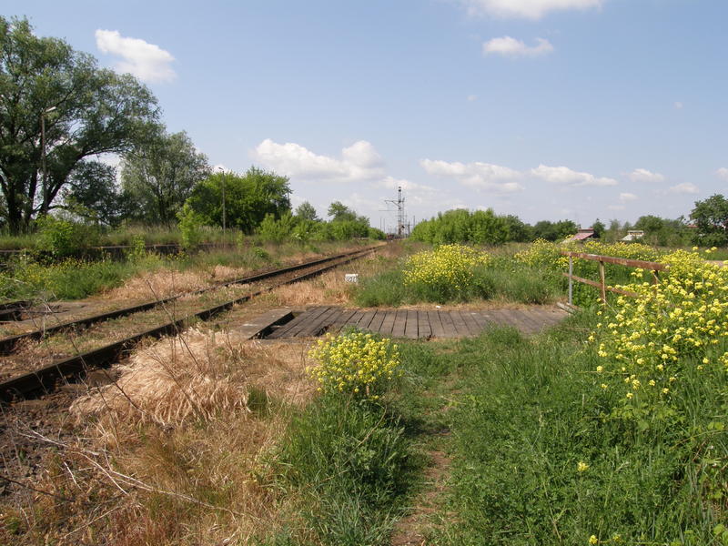 Wschodnia głowica rozjazdowa. Na pierwszy planie tor nieczynnej linii Dębica Towarowa - Dębica Wschodnia. Widok w stronę Tarnobrzega.