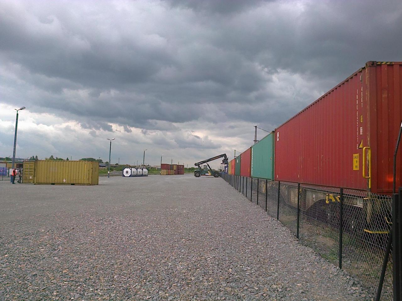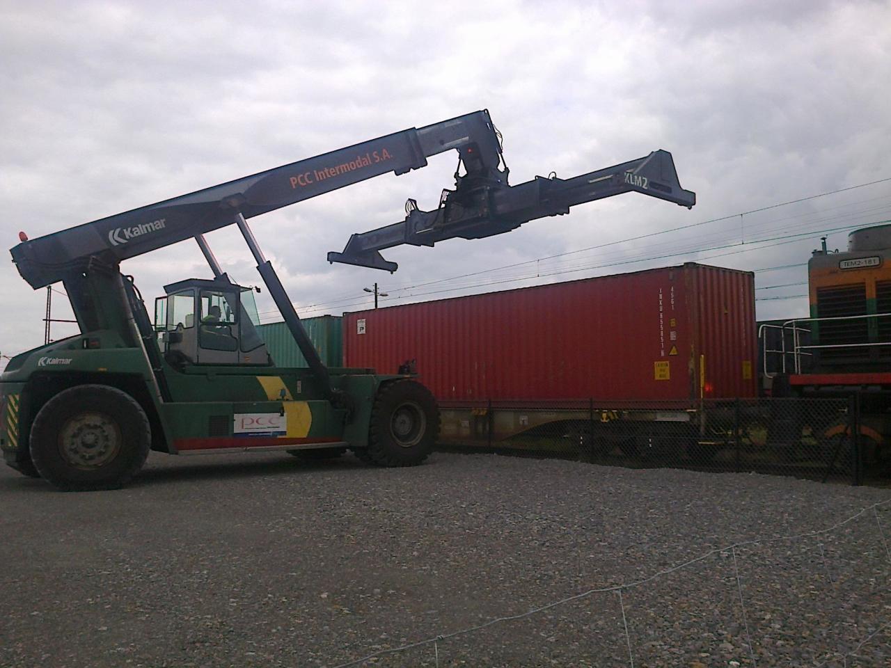 Dębica Towarowa - rozładunek pierwszego składu z kontenerami na terminalu.