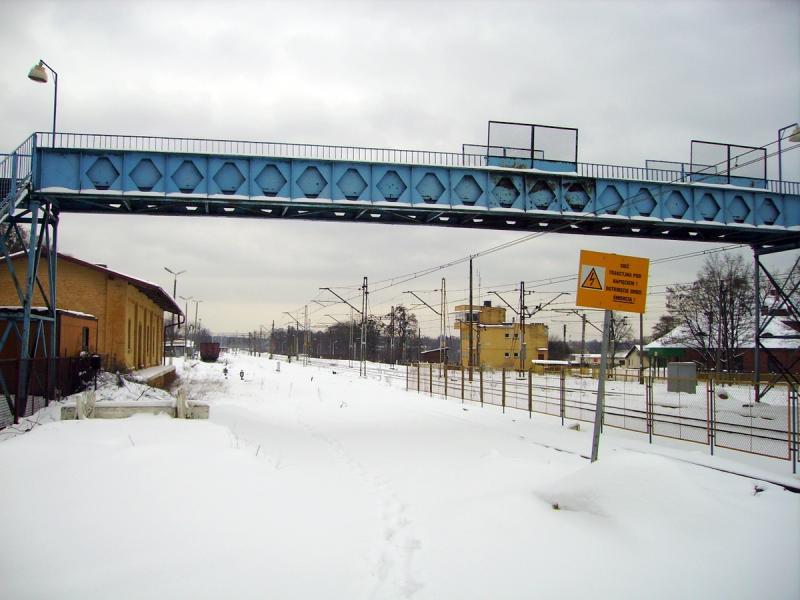 Peron 2. Widok z peronu drugiego na kładkę nad torami.