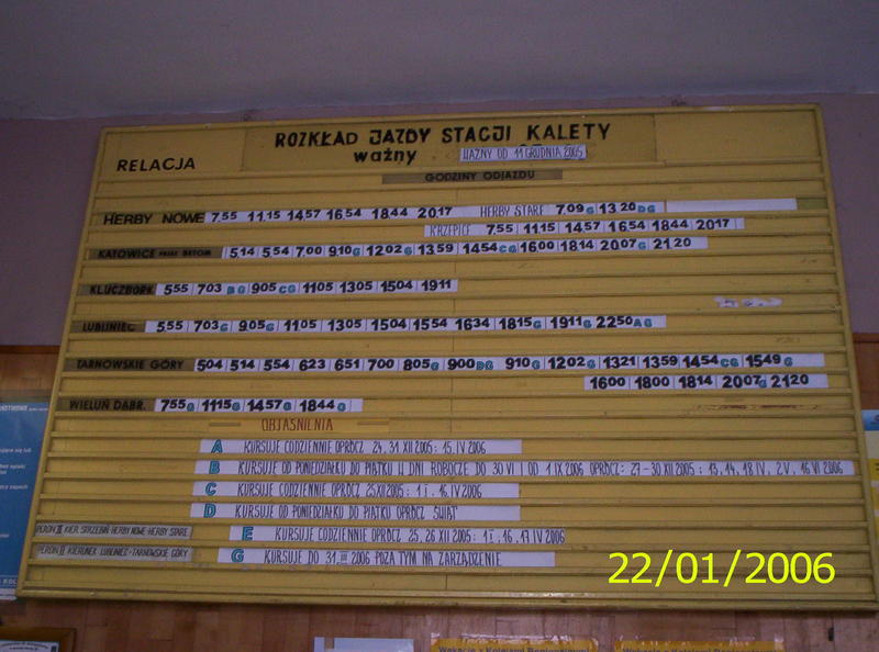 Rozkład jazdy na stacji Kalety 2005/2006.