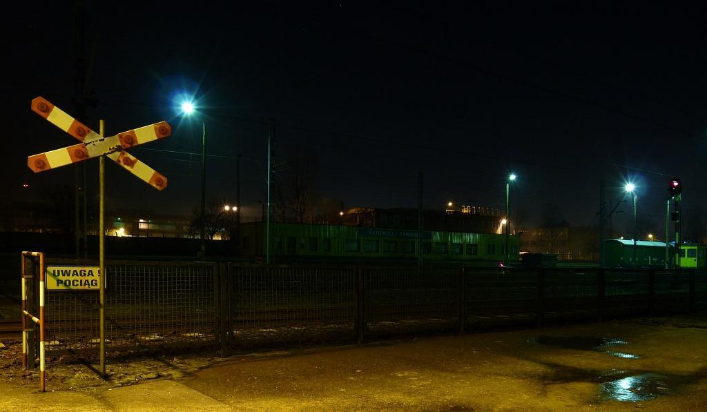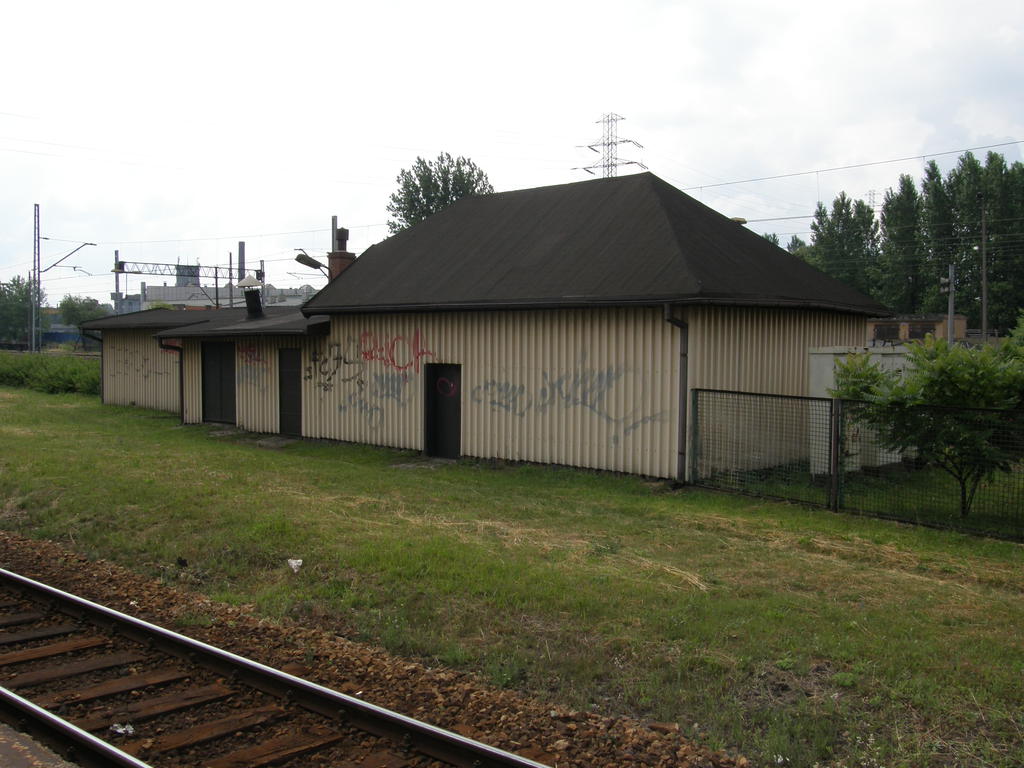 Budynek biurowo-gospodarczy. Rampa boczna o długości ok. 170 m. W tle zabudowa Huty Ferrum. Widok w kierunku północno-wschodnim: w prawo stacja Katowice, w lewo Mysłowice, Sosnowiec, dawniej Katowice Janów. 315,6 km/ 30,2 km.