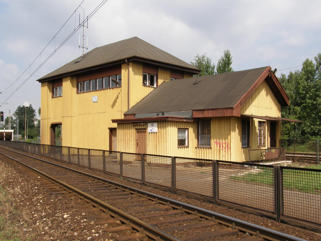 Nastawnia KZ1 od frontu. Widok w kierunku wschodnim: Mysłowice, Sosnowiec, dawniej Katowice Janów.