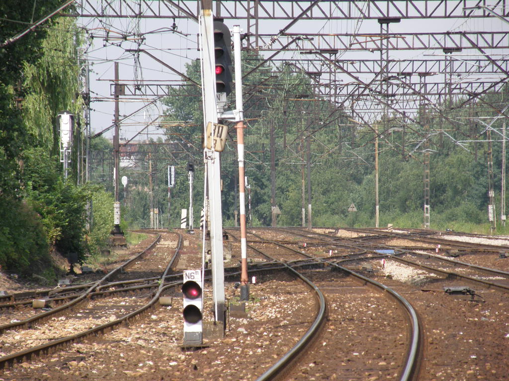 Zachodnia głowica rozjazdowa. Nastawnia dysponująca KZ. Widok w kierunku północno-zachodnim: stacja Katowice. 315,6 km/ 30,2 km.