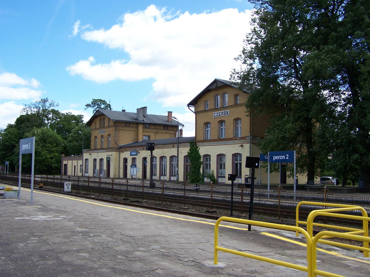 Stacja ma swój klimat. Są semafory kształtowe. Stacja ma 2 nastawnie, jedną dysponującą C oraz drugą wykonawczą C1. Co ciekawe budynek dworca jest czynny, używany zgodnie z przeznaczeniem. Otwarta jest część parteru, w którym jest nieczynna kasa biletowa przewoźnika Polregio oraz poczekalnia. Nie ma toalety, jest Toi Toi. Część dworca jest wyremontowana, natomiast jeszcze trzeba dokończyć remont elewacji lecz wnętrze wyremontował UMiG Czersk. Na stacji dowiemy się o pociągu przez: - Internet - Plakat z rozkładem - Usłyszymy zapowiedzi, są tutaj megafony. Opis budynków: Toalety były zdewastowane obecnie drzwi są zabezpieczone. Magazyn jest (był jeszcze w czerwcu) hurtownią artykułów spożywczych. Jakiś budynek (zapewne magazyn paliwa lub oleju) jest zdemolowany w około masę potłuczonych butelek i innego śmiecia. W budynku po lokomotywowni (lub wagonowni) mieści sie skup złomu. (info: yusek, 2007-12-31) Budynek dworca jest w tej chwili przebudowywany przez gminę Czersk. Pracę mają się zakończyć w 2021 roku Budynek magazynu jest zamknięty. (info: Maciej Iwanowski, 2020-08-05) |