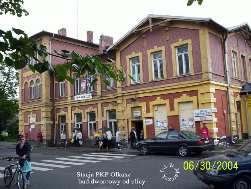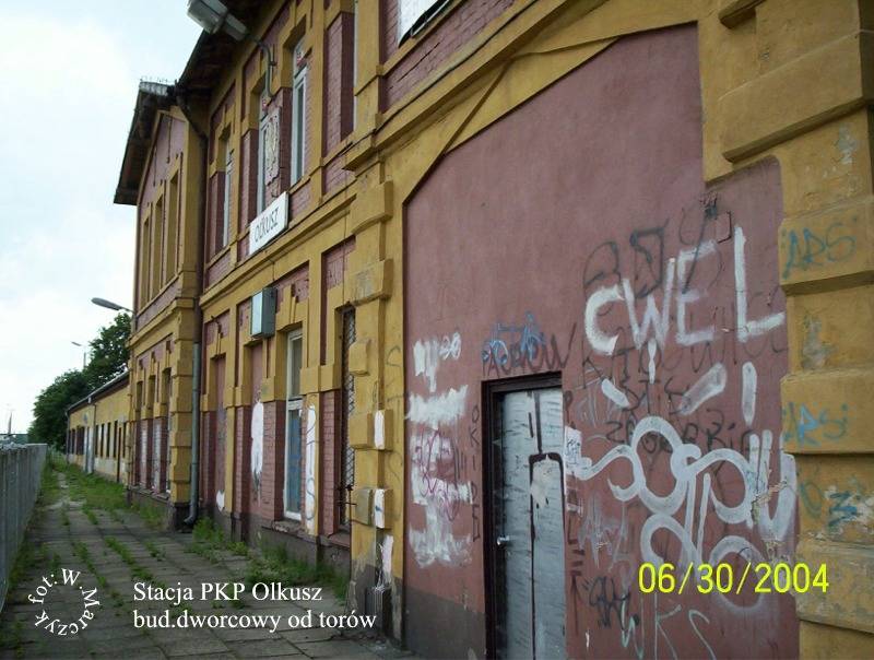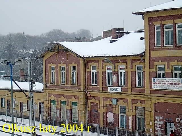 Budynek dworca od strony peronów. W lewo Bukowno, w prawo Wolbrom.