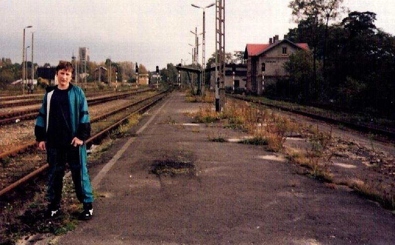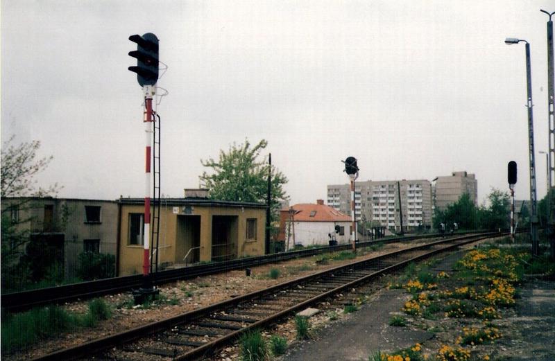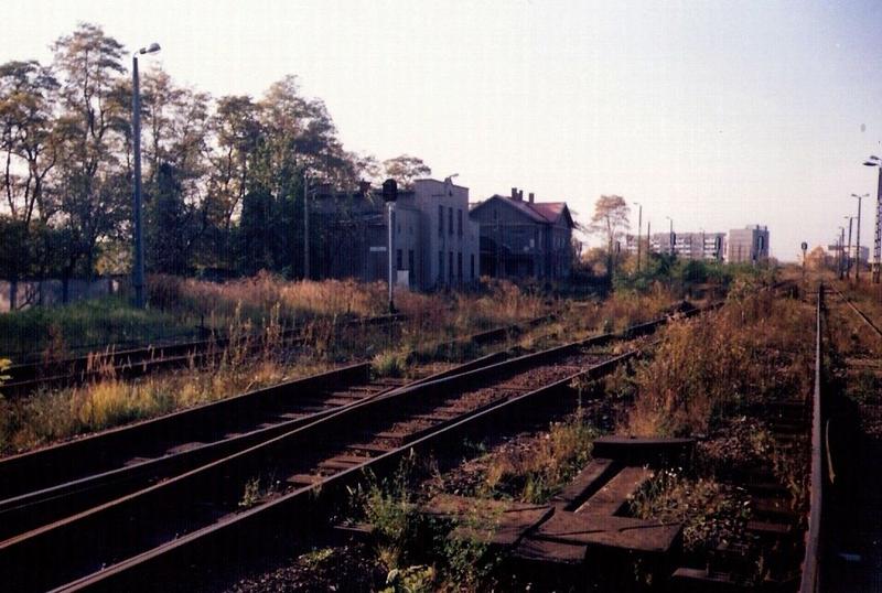Rok 1997 z lewej strony widoczny budynek stacyjny, w dali w torze nr 1 przy peronie-4 węglarki i lok SM31-050 jako pociąg z KWK Sobieski. Budynek jest podobny konstrukcją do budynku stacyjnego w Bolęciniu, ta sama myśl architektoniczna.