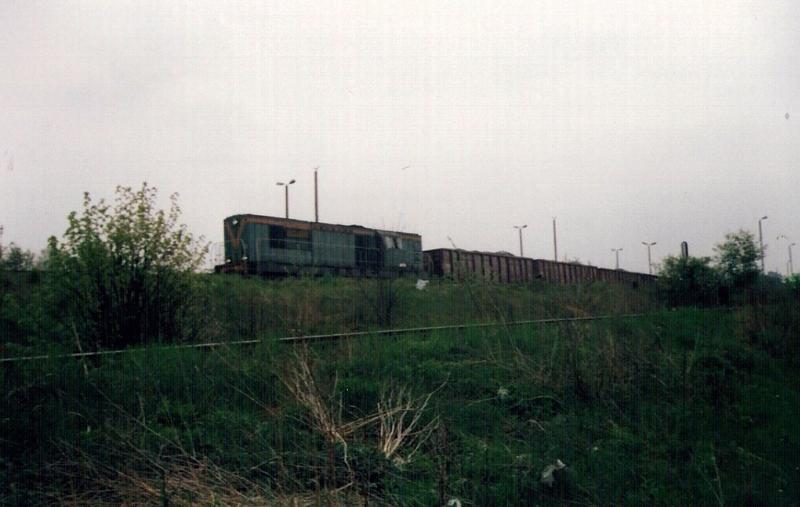 Widok SM31-142 z pociągiem do Szczakowej, od strony ulicy przy łuku stacyjnym. Tor w dół prowadził na KWK Kanty, EL. Jaw III, EL Jaw II i Petro GAz. Ciężko było wjechać tym torem z bruttem do stacji, wzniesienie wynosiło 14,5 promila. Jak w Zakopanem:).