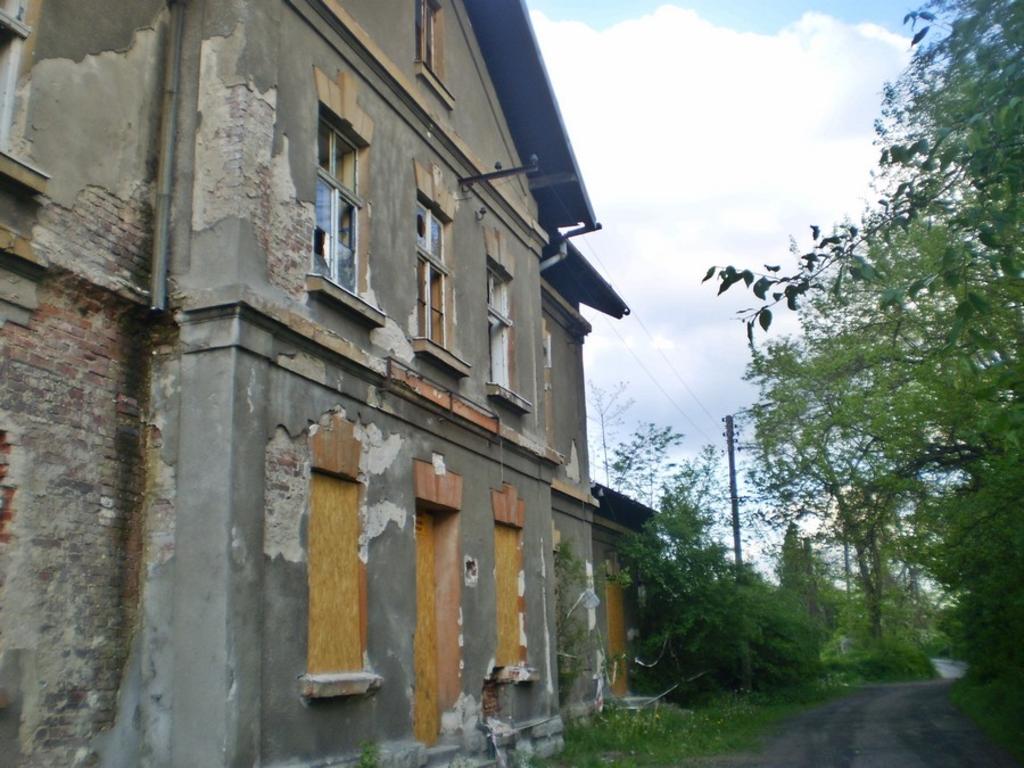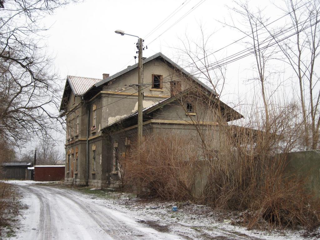 Budynek dworca obecnie od strony "torów". Niestety już bez torów… i strasznie poniszczony.