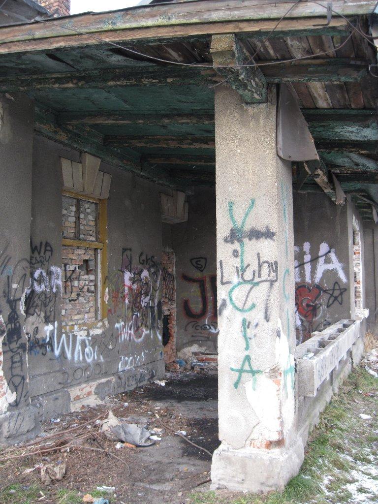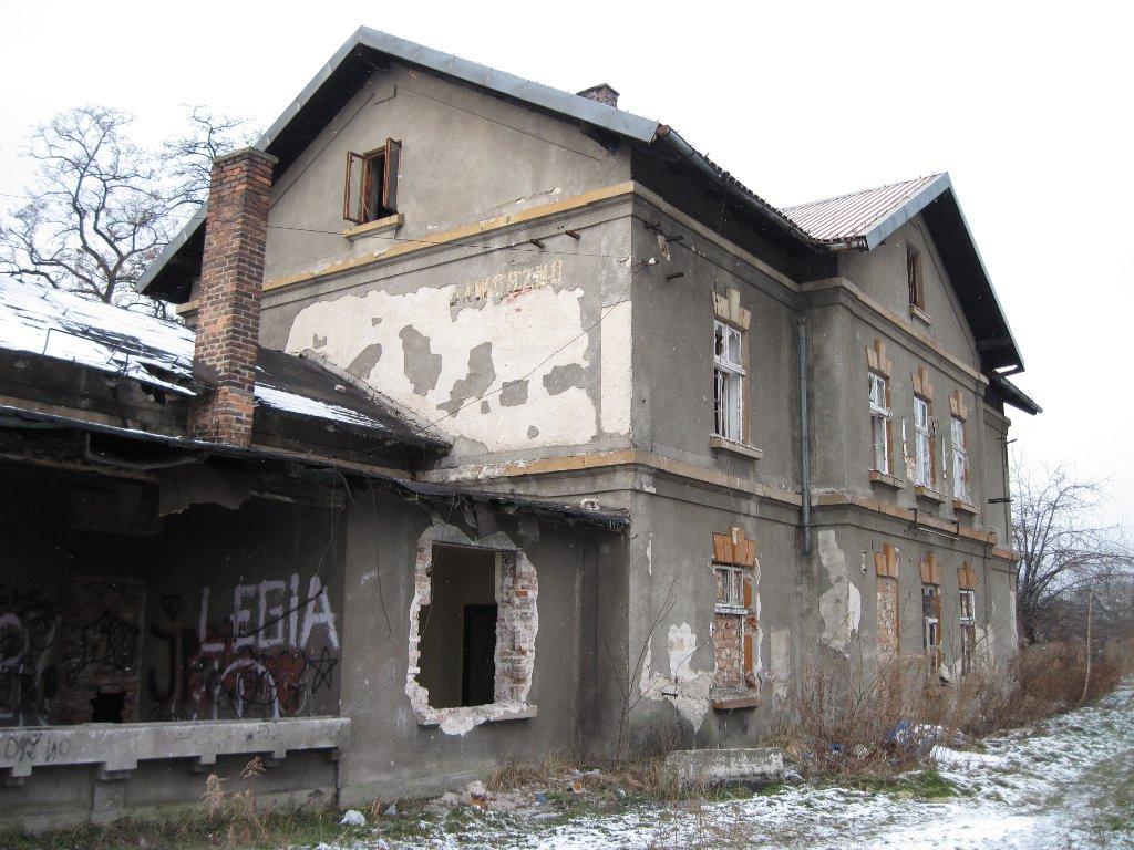 Widok od ulicy Kolejowej. Rodzina, która zamieszkiwała ten budynek wyprowadziła się stąd zaledwie kilka miesięcy temu, a budynek rozsypuje się zarówno z zewnątrz jak i od środka.