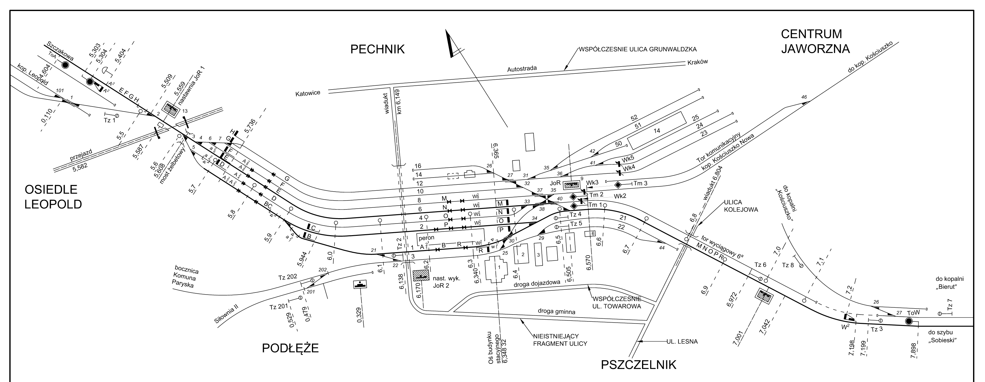 Reprodukcja planu schematyczny stacji Jaworzno, część 1. Stan na dzień 16.06.1999 r.