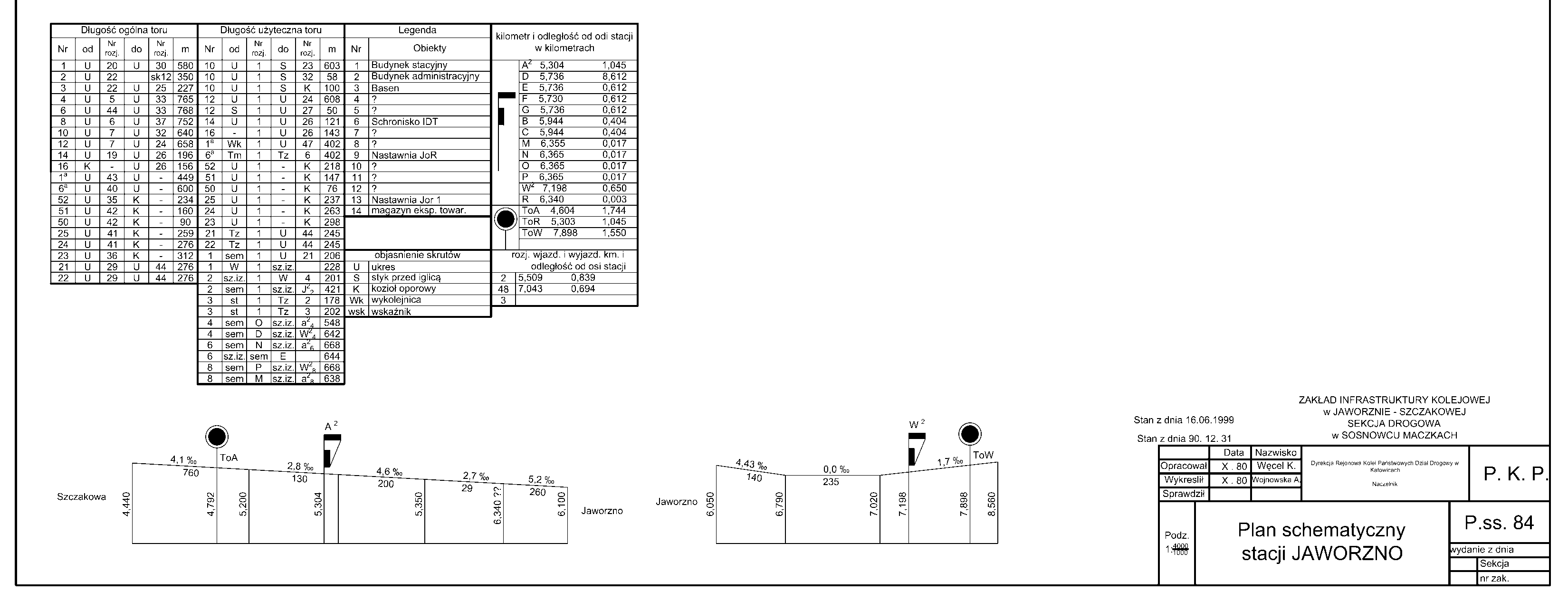 Reprodukcja planu schematyczny stacji Jaworzno, część 2. Stan na dzień 16.06.1999 r.