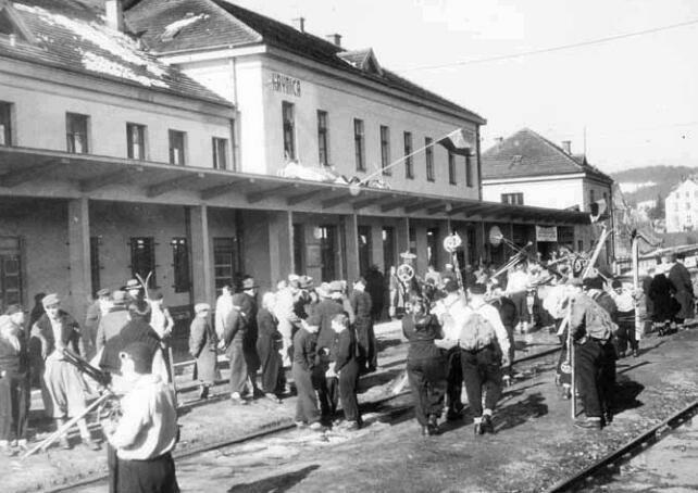 Narciarze na dworcu, Krynica