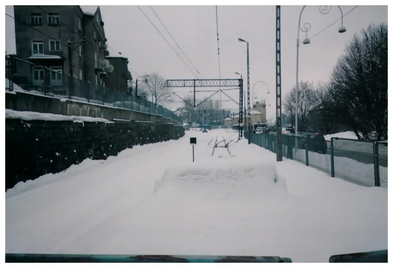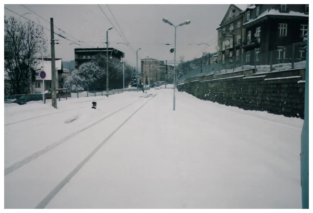 Widok w kierunku północnym: koniec linii. W tle, po lewej dworzec.