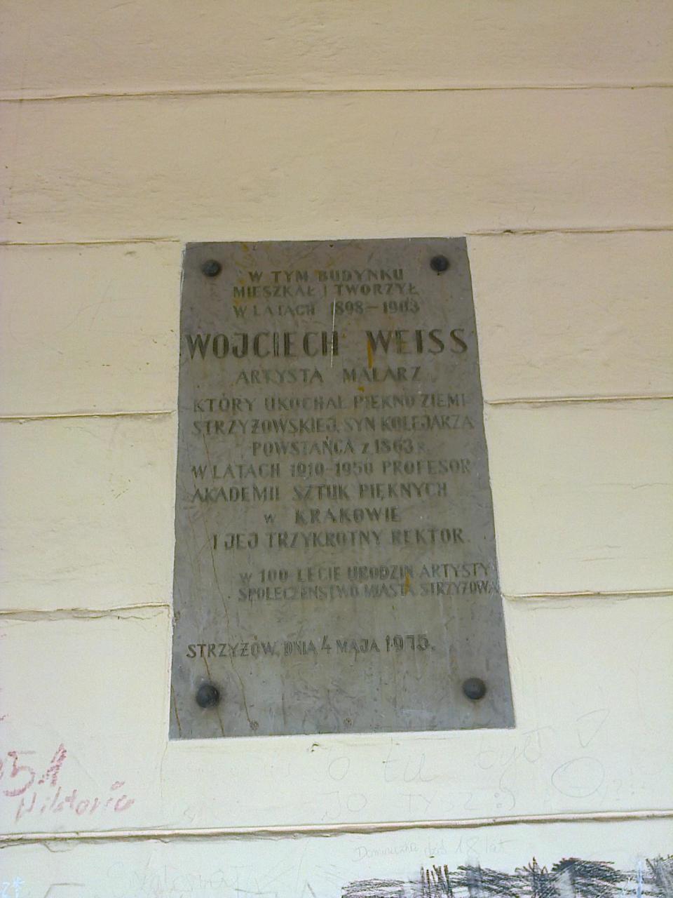 Strzyżów nad Wisłokiem - tablica pamiątkowa na budynku dworca.