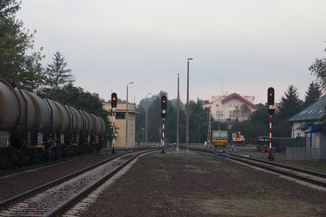 Semafory wyjazdowe w stronę Jasła. W tle, z lewej nastawnia dysponująca St.