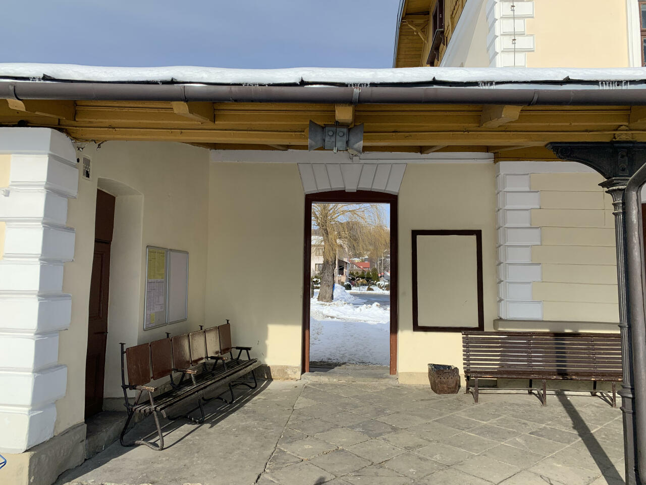 Wejście pod zadaszenie. Widok od strony torów: w prawo Rzeszów, w lewo Jasło.