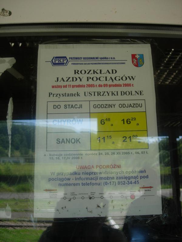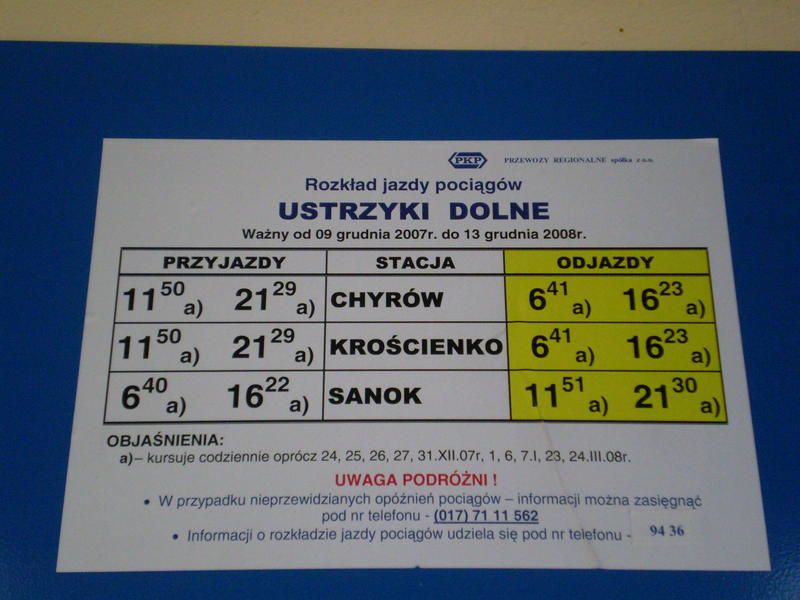 Rozkład jazdy PKP w Ustrzykach Dolnych.