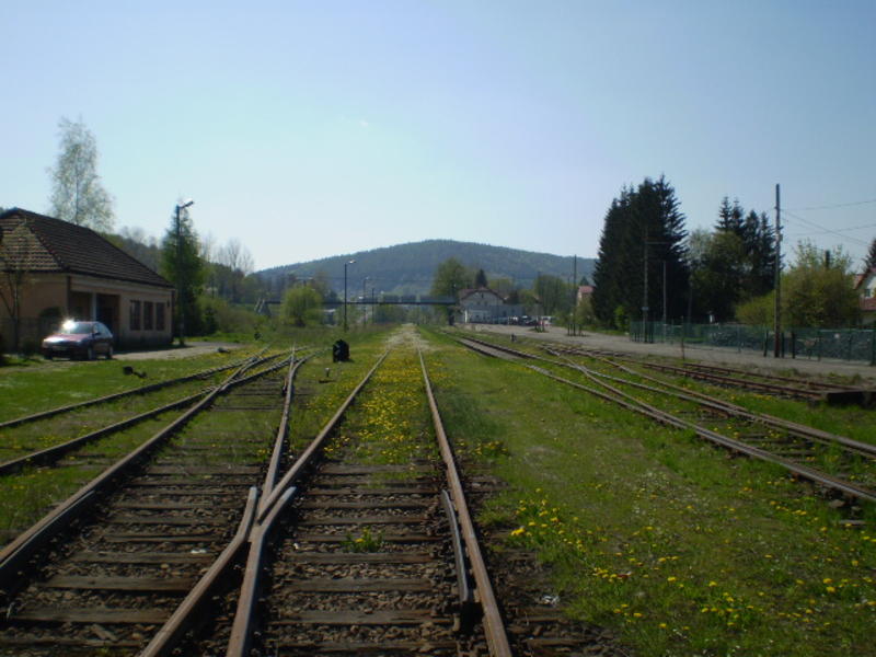 Widok na stację w kierunku Zagórza. Z prawej, poza kadrem, budynek dworca.