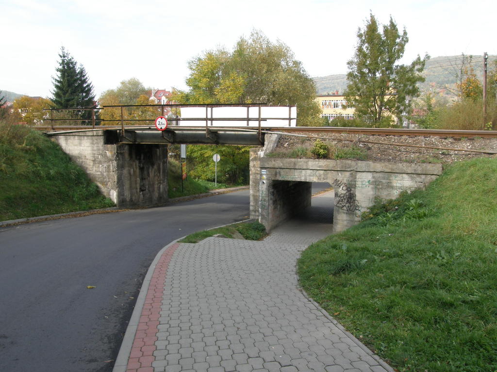Wiadukt nad ulicą Kolejową. W lewo Zagórz/Sanok, w prawo perony. 149,2 km.