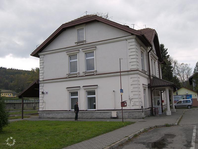 Budynek dworca od strony peronów; w lewo Zagórz, w prawo Krościenko.