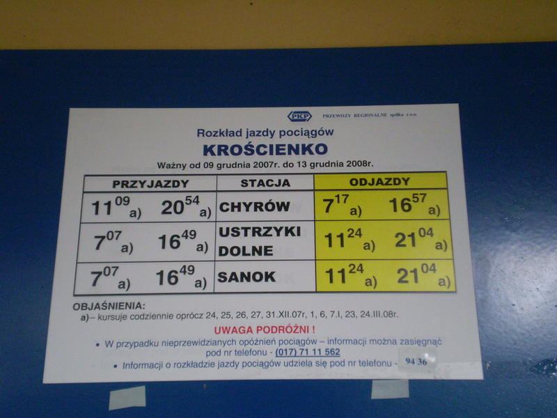 Rozkład PKP w Krościenku. Rozkład PKP.