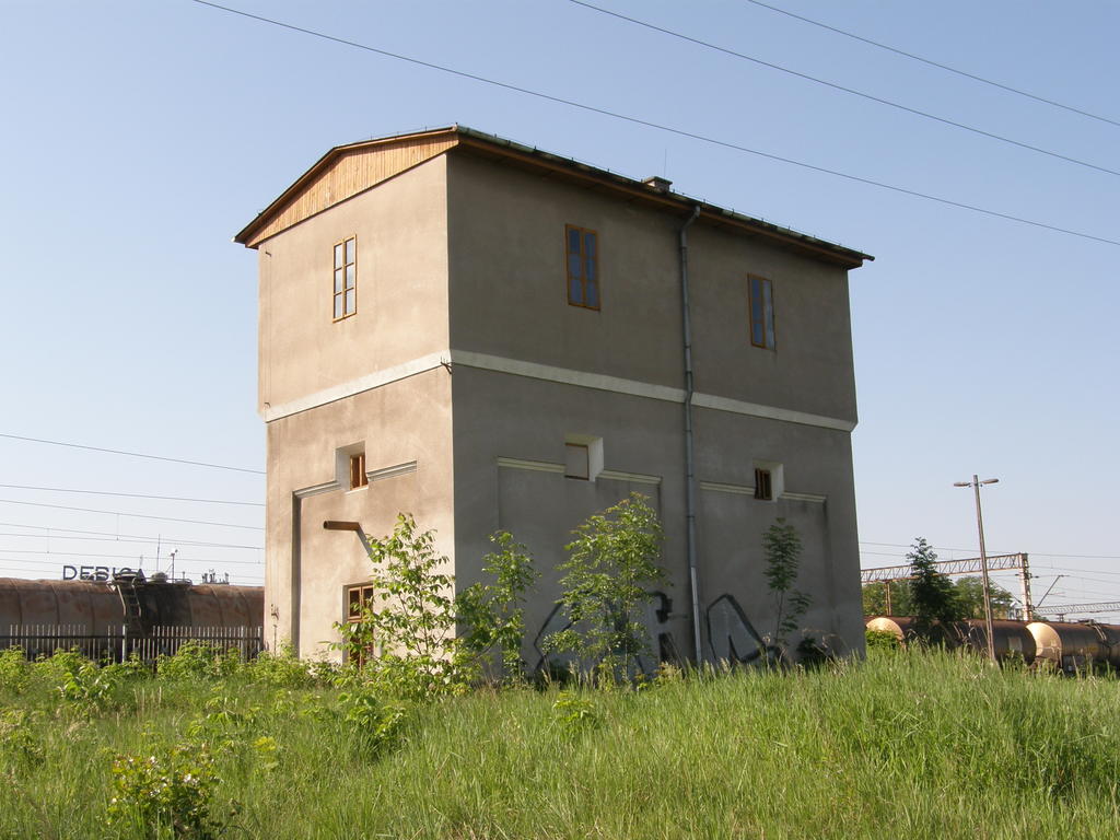 Wieża wodna naprzeciwko budynku dworca. W lewo Rzeszów, w prawo Tarnów.