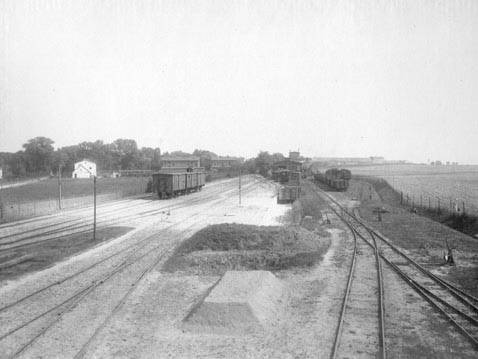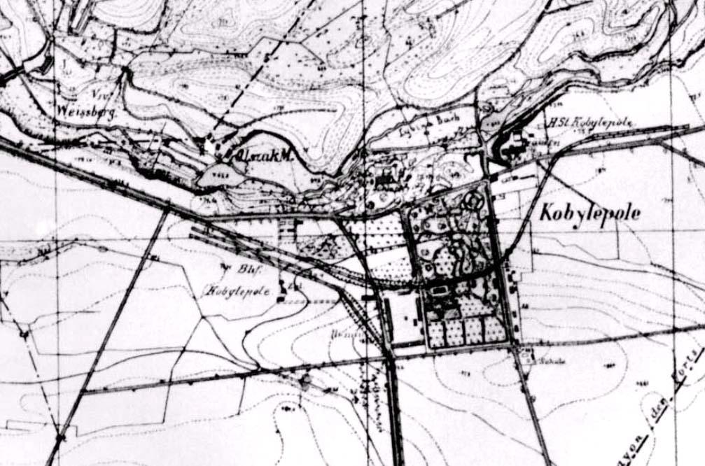 Stan po roku 1902 w którym powstały omawiane tory, na mapie nie ma budynku dworca (1906 r.)dwóch budynków kolejowych przy ul. Folwarcznej i parowozowni (1912 r.?)