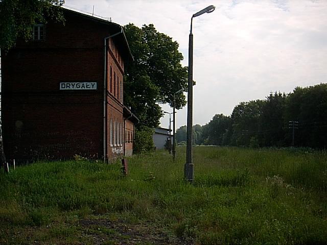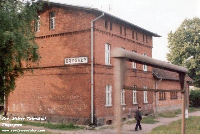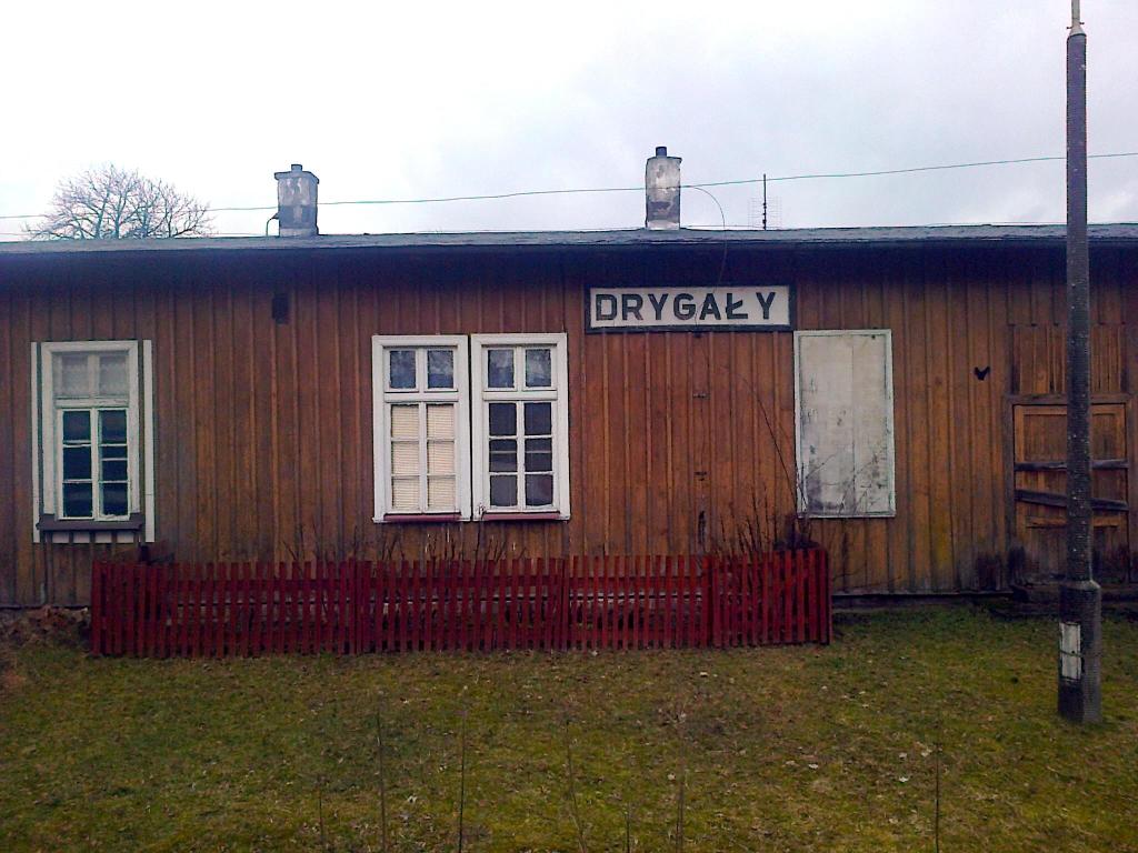 Stacja Drygały; budynek dworca od strony peronu i wjazdu z Pisza.