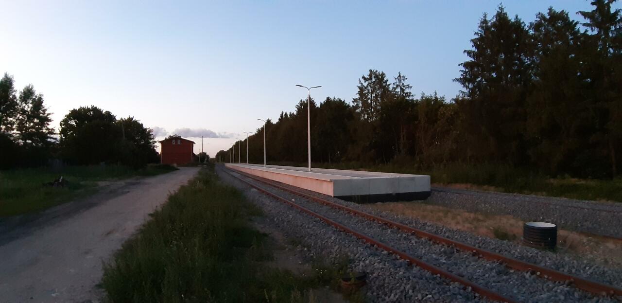 Stacja Drygały, peron w trakcie budowy. Widok w kierunku północnym, od strony wjazdu z Piszu.