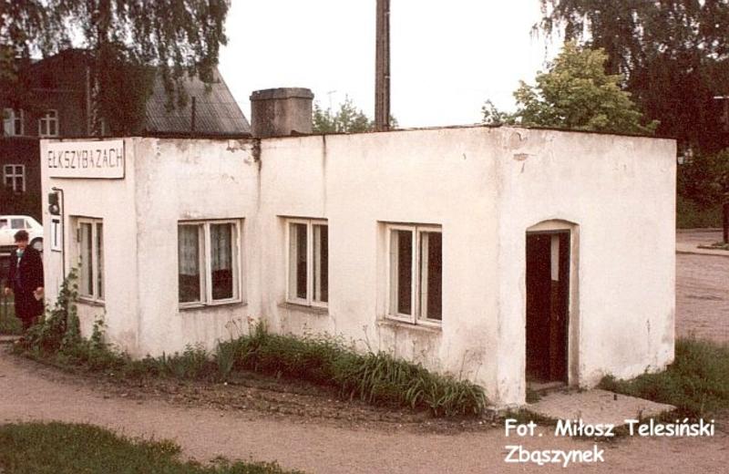 Zamknięty szalet peronie p.o. Ełk Szyba Zachód. Kilkanaście metrów dalej Ełk Tartak.