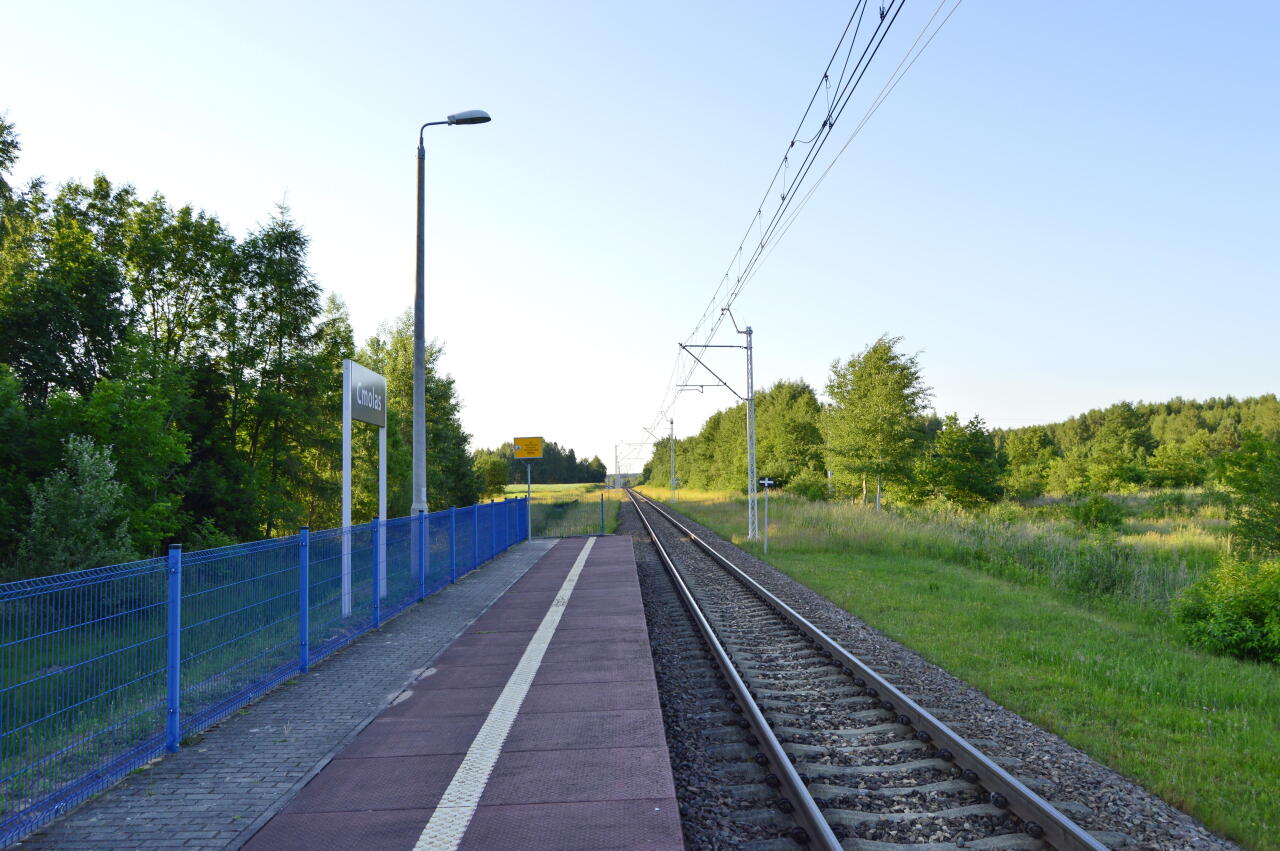 Opis ogólny: Dawniej mijanka, rozjazd od strony Ocic znajdował się około 30,3 km, na jego wysokości po zachodniej stronie toru pozostały ruiny niewielkiego pomieszczenia. Jednak trudno stwierdzić, czy miało ono przeznaczenie kolejowe. Zaniedbane perony porastają chwasty i niewielkie drzewa. W rejonie przejazdu kolejowego można odnaleźć pozostałości po pędniach w postaci wieszaków, jak również fundamenty po budce dróżnika. (info: Dariusz Krysztofiak, 2006-01-28) Opis infrastruktury: Dwa perony długości około 250 metrów o nawierzchni bitumicznej, oświetlenie zdewastowane, pozostały po nim słupy z oprawami lamp. Pozostał plant po drugim torze. (info: Dariusz Krysztofiak, 2006-01-28) Opis budynków: W pobliżu przejazdu kolejowego po zachodniej stronie toru, stoi barak dla robotników. (info: Dariusz Krysztofiak, 2006-01-28). W trakcie modernizacji linii (2009 r.) przystanek uległ przesunięciu. |