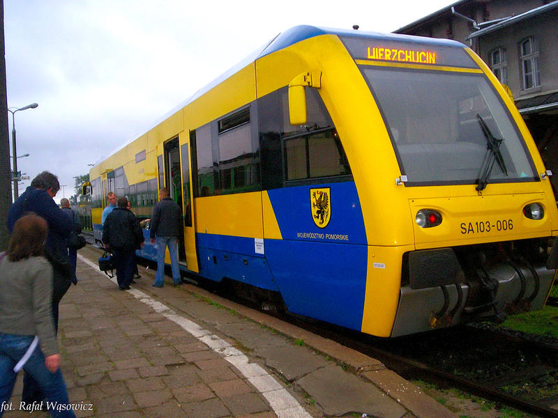 Szynobus SA103-006 jako osobowy do Wierzchucina przez Bąk,Czersk,Szlachta,Lipowa Tucholska.