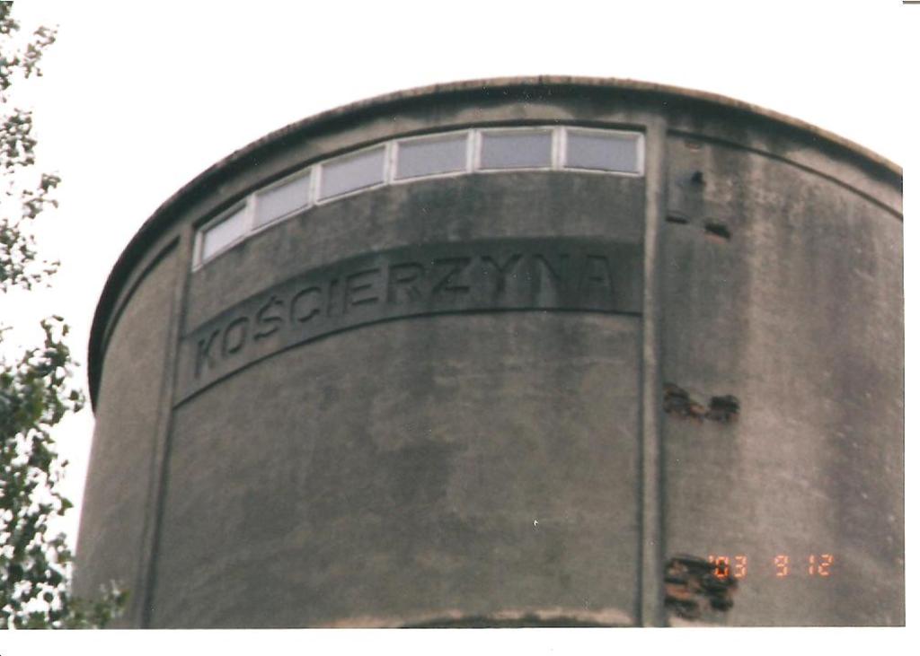 Kościerzyna. Nazwa stacji na wieży wodnej.