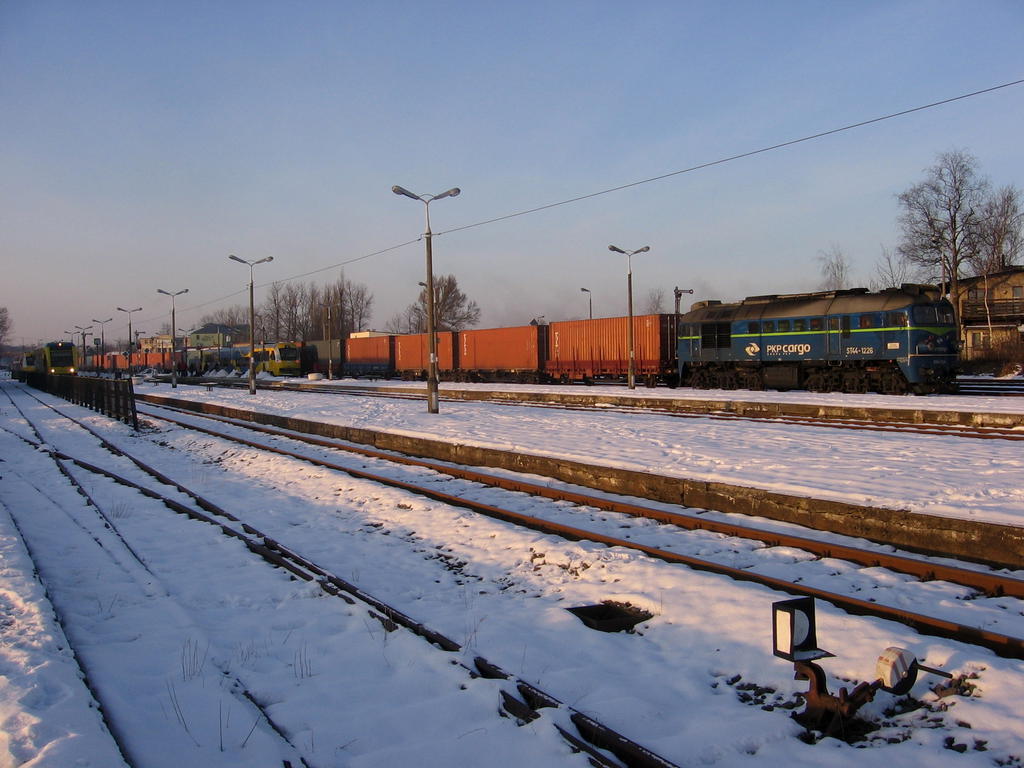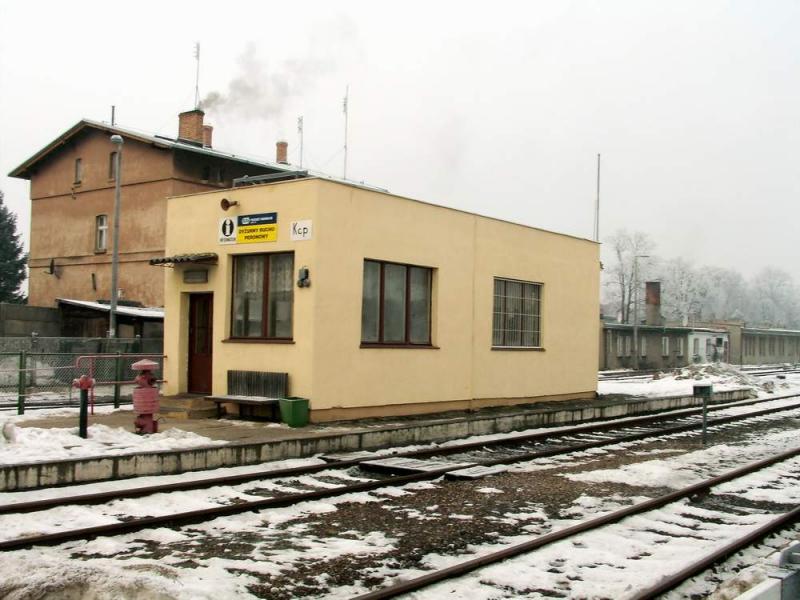 Widok na stację w mroźne styczniowe popołudnie.