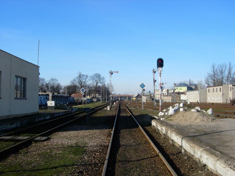 KOŚCIERZYNA. Widok z torów na semafory.