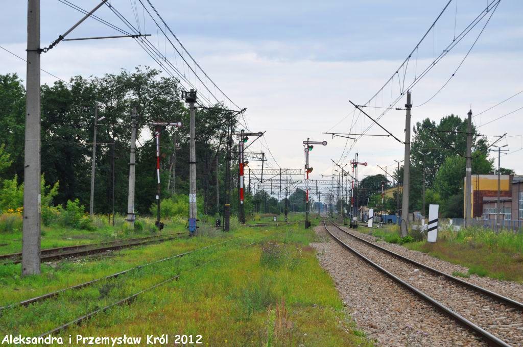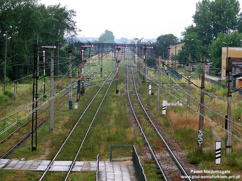 Semafory wyjazdowe w kierunku Skarżyska Kamiennej. Widok z kładki nad peronami.