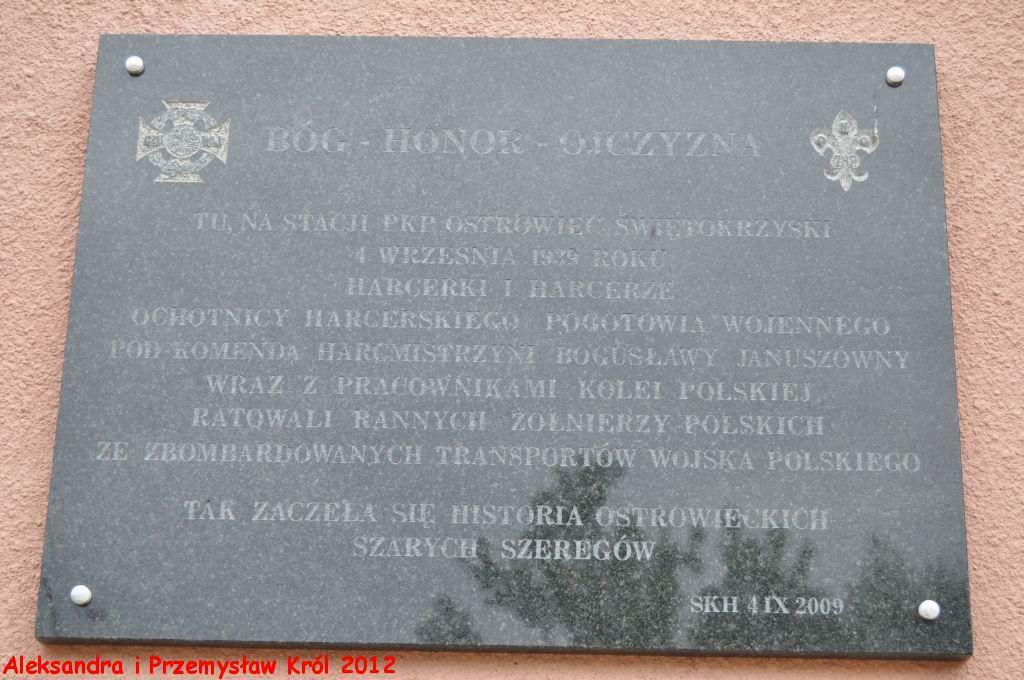 Tablica pamiątkowa na budynku stacji od strony placu dworcowego.