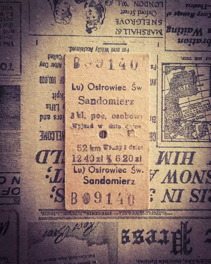 Bilet kartonikowy wydany na stacji Ostrowiec Świętokrzyski.