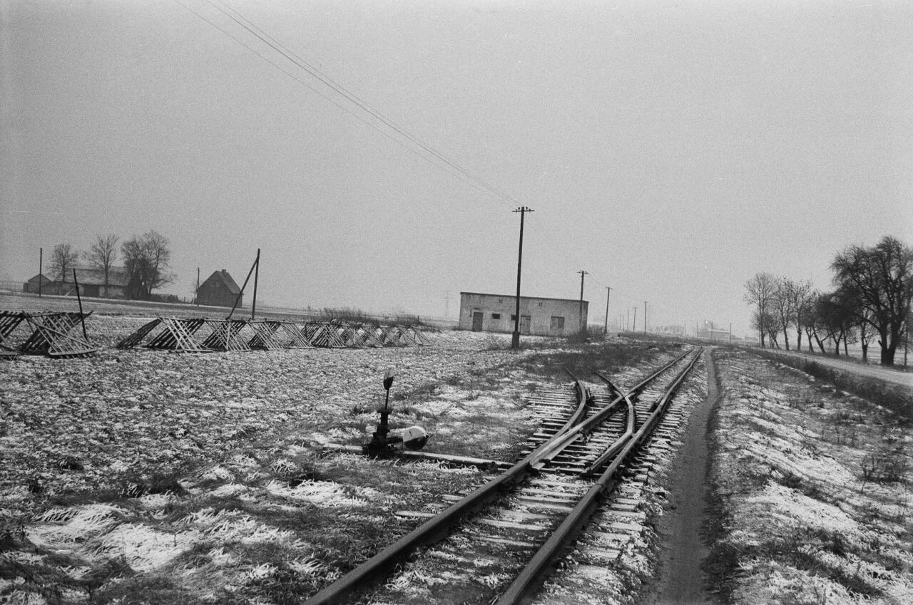 Rozebrane tory, nasyp częściowo zagospodarowany pługami