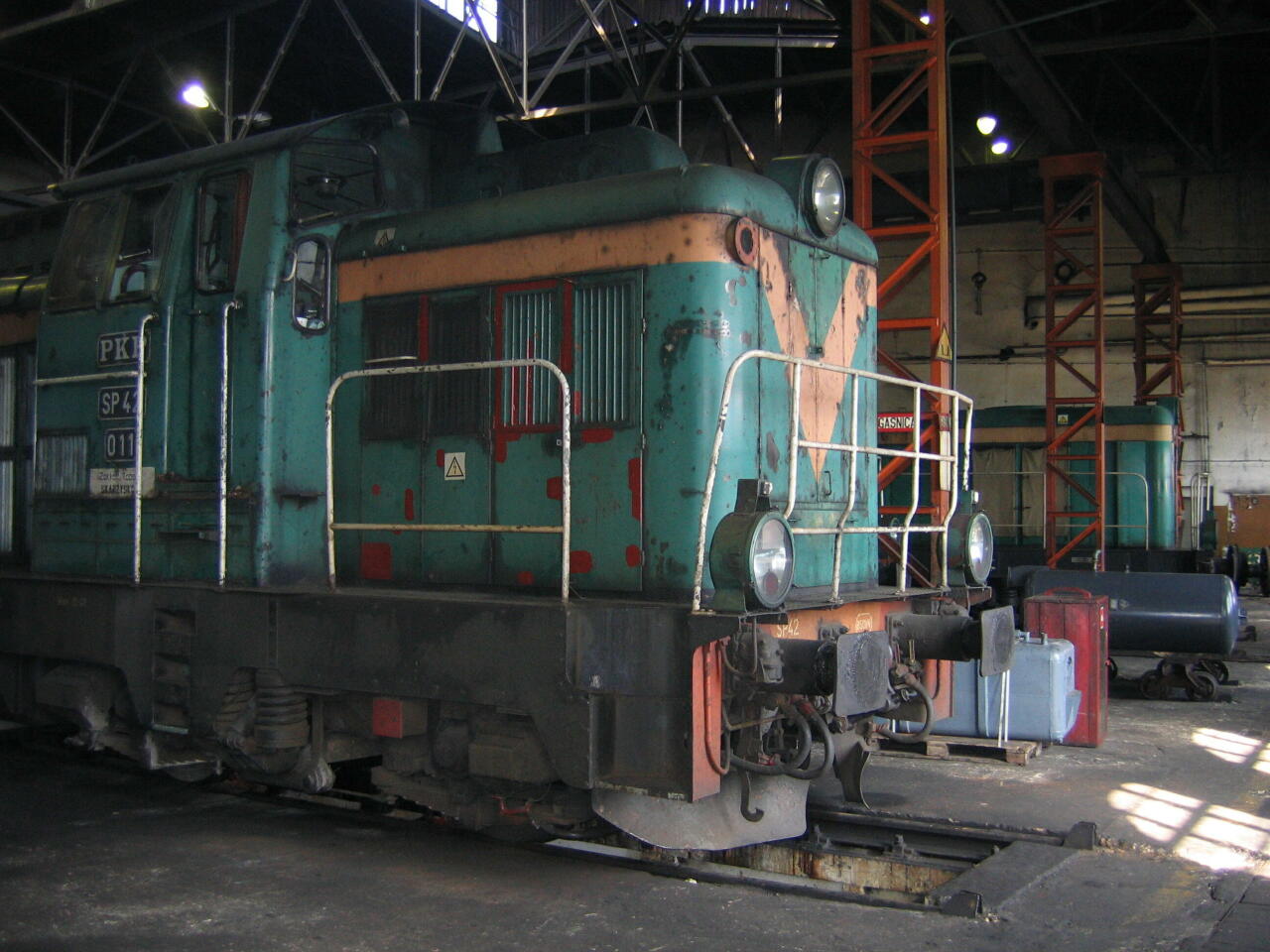 Wnętrze lokomotywowni - na pierwszym planie dość okropnie wyglądająca SP42-011.