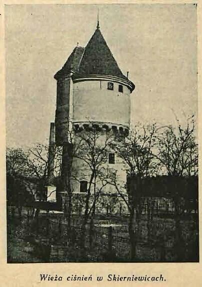 Wieża wodna stacji Skierniewice. Wybudowana w odrodzonej Polsce, w miejsce zniszczonych w trakcie I w. św. wież wodnych pochodzenia rosyjskiego.