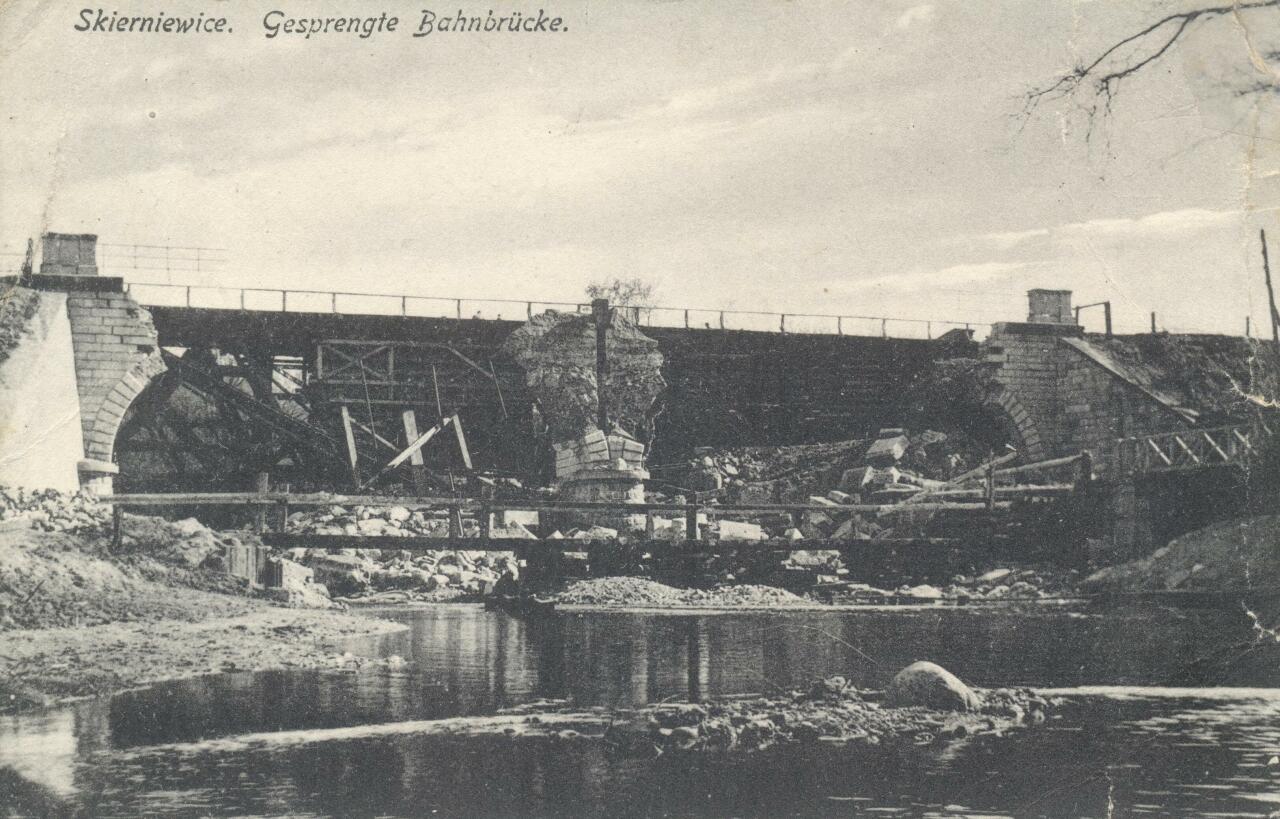 Most w Skierniewicach po zniszczeniach w toku I wojny światowej - naprawa prowizoryczna.