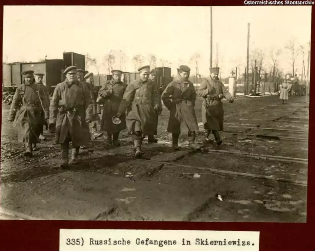 Jeńcy rosyjscy na stacji Skierniewice - I wojna światowa.