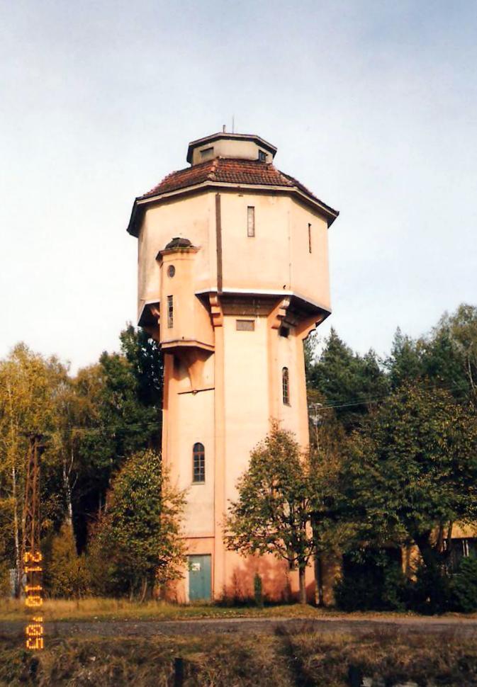 Herby Nowe. Wieża wodna, widok od strony torów.