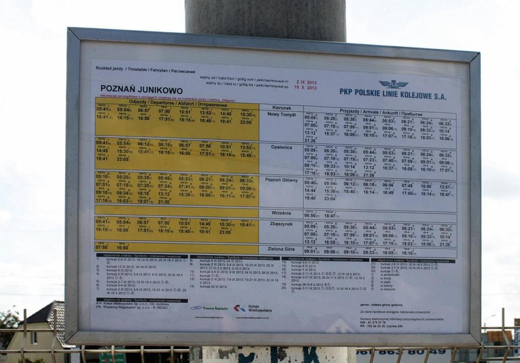 Dynamiczna: wyświetlacze peronowe, infokioski, megafony. Statyczna: gabloty, peronowe tablice małe i duże |